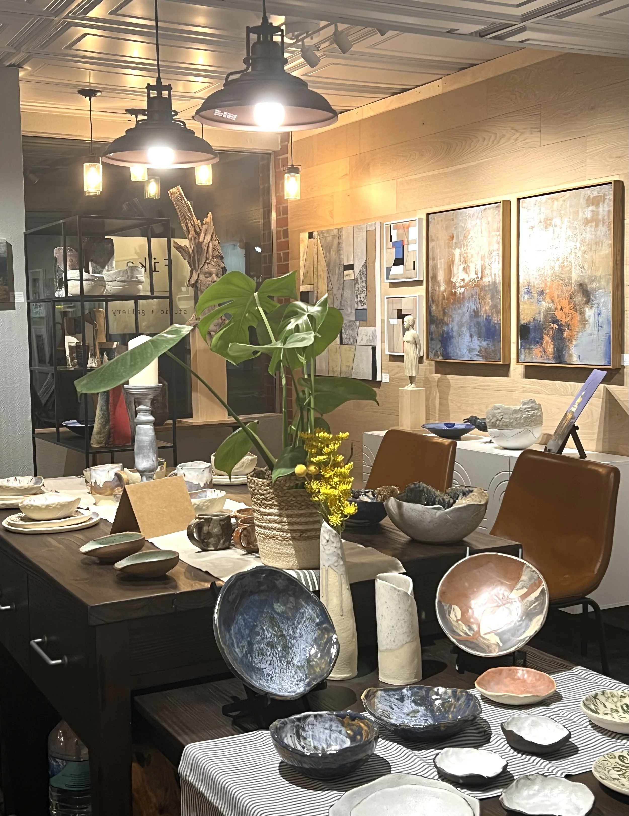 We welcome you to our gallery + studio spaces to browse original paintings, mixed media artwork + functional ceramics. All work in the gallery is created in Bend by artists Lynn Christopher, Paul Christopher and Lronard Skuro, We welcome commissions if you have a special project, or a space that needs just the perfect artwork. We are looking forward to spring with new paintings and ceramics